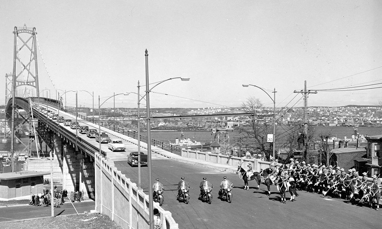 The firm of Monsarrat and Pratley were engaged to carry out studies of a possible high-level highway bridge linking the 2 sides of the harbour as far back as 1928. The bridge location between North Street in Halifax, and Thistle Street in Dartmouth was approved by Dominion Authorities and the British Admiralty in 1933. The 1945 master plan for Halifax assumed that this would be the location for the bridge, and suggested widening North Street to accommodate traffic. Dartmouth’s master plan of 1945 also assumed this would be the location.