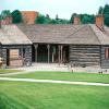 General view of the Octagonal Blockhouse showing the exterior walls constructed of squared logs with dovetailed corners, and the loopholes, 1978.; Agence Parcs Canada / Parks Canada Agency, T. Grant, 1978.